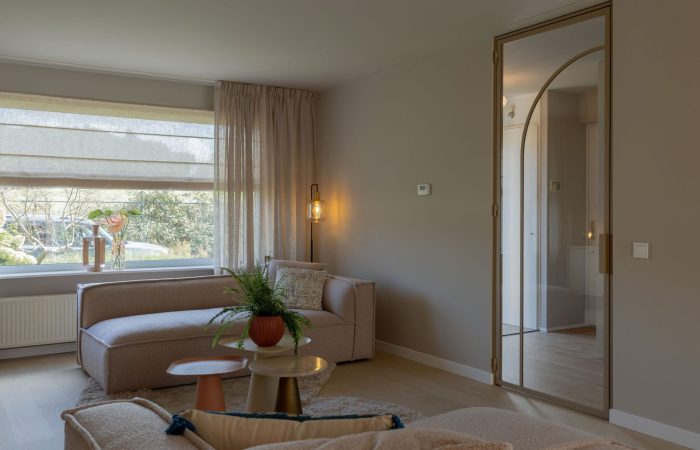 Bernadet is al langer fan van het programma, wat haar motiveerde om ook een keer mee te doen. Ze zoekt vooral licht in haar interieur. De donkere vloer die er nu ligt is erg aanwezig en bovendien lastig te stijle. Ze houdt wel van luxe meubels à la hotel chique, maar houdt ook van de rust en orde uit de japandi stijl. Verder wil ze een fijne plek om thuis te kunnen werken, en is haar grootste wens nieuwe kozijnen. Maar als ambtenaar weet zij ook als geen ander hoe belangrijk het is om daarvoor een vergunning aan te vragen…